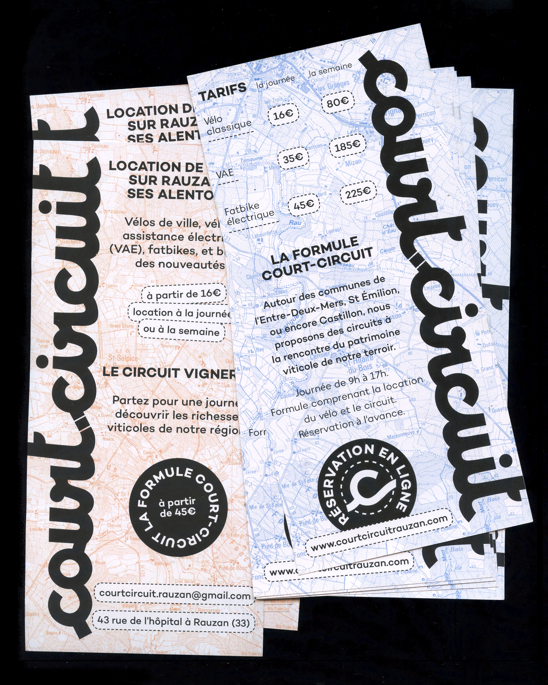 Identité pour Court-circuit, service de location de cycles & véhicules électriques basée en Entre-deux-mers.